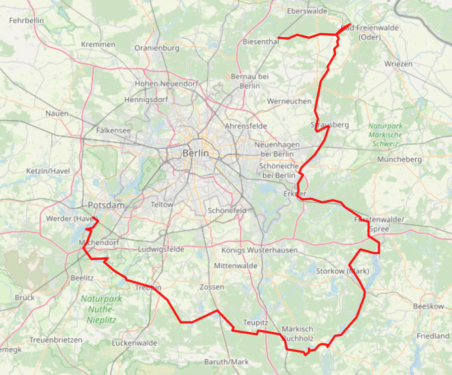 The 66-Seen-Wanderweg (66-lake-route) is a circular trail around Berlin of 416 km in 17 stages. With a maximum distance of 25 km away from the city, the route’s stages have starting and end points that can be reached by public transport. Although at some points the route just about reaches the borders of Berlin it felt like I was in a different country: empty forest paths, the air full of humming and singing and of course those idyllic lakes.